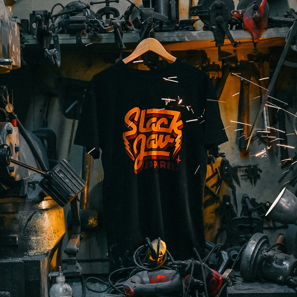 Welcome to Slackjaw Apparel. With over a decade in the game, starting life as one man with a market stall in Camden to a family of loyal customers worldwide - we're happy to have you here. Shop all the latest t shirts, hoodies, sweatshirts and our Raw Denim range online now. All made in premium materials with no detail spared, you'll find everything you need to elevate your wardrobe.